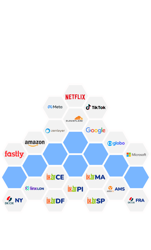 Criado especialmente para provedores de internet, o Peering é uma solução que simplifica o acesso a uma ampla gama de conteúdos nacionais e internacionais. Com uma única sessão BGP, o cliente se conecta diretamente aos principais destinos, eliminando a necessidade de múltiplas conexões com diferentes pontos de troca de tráfego e reduzindo custos operacionais.